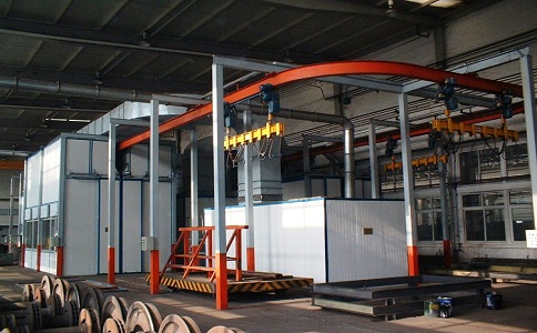 涂裝生產(chǎn)線全線工件輸送系統(tǒng)采用空中懸掛和地面滑橇相結(jié)合的機械化輸送方式,運行平穩(wěn)、快速便捷,采用PLC可控編程,根據(jù)生產(chǎn)工藝的實際要求編程控制——實行現(xiàn)場總線中心監(jiān)控,分區(qū)自動實現(xiàn)轉(zhuǎn)接運行。