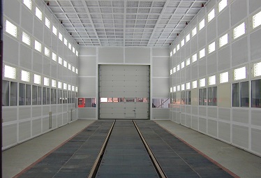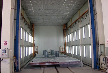 干式噴漆房室體內(nèi)、外壁板采用厚度δ0.5mm 鍍鋅鋼板,中間填充夾心保溫層巖棉,巖棉δ50mm 厚,密度為 120kg/m3,使外壁板溫度不高于室溫 5℃,傳熱系數(shù)不大于 0.38Kcal/㎡.h.℃,平均隔音量不小于 21.5R(dB);耐鹽霧性能≮500h,接地電阻不大于100Ω,具有美觀耐用、密封效果佳、保溫隔熱效果好、抗沖擊性優(yōu)良等優(yōu)勢。 | 從供風(fēng)系統(tǒng)送來的新鮮風(fēng)進(jìn)入靜壓室,經(jīng)過高效型空氣過濾棉,氣流流向操作間更均勻,高效過濾棉選用荷蘭進(jìn)口“FILTRAIR”產(chǎn)品。靜壓室設(shè)有型鋼骨架,頂網(wǎng)為優(yōu)質(zhì)C型鋼結(jié)構(gòu),經(jīng)特殊防銹處理,鋼性好、無銹蝕、更換頂棉容易。 | 選用歐式卷簾門,新型金屬材料雙層輥壓成型,中間填充不含碳?xì)浞锏木郯滨ソ^熱發(fā)泡材料,保溫、抗彎性好,且防止冷凝水出現(xiàn);雙層中空鋁合金門片,厚度達(dá)2.4毫米,堅(jiān)固耐用;型材表面為多層烤漆或薄膜層,具有優(yōu)良的抗劃傷性能,抗腐蝕、不腐化、耐磨、抗敲打、抗撞擊;在啟動(dòng)運(yùn)行過程中,快捷且無噪音(速度可達(dá)約0.1m/s,噪音小于58分貝)。 | 地坑在格柵下落地面約1200mm,且此通道兩旁每間隔1500mm設(shè)置照明一組,以方便對(duì)結(jié)構(gòu)件底部噴漆。兩軌道外側(cè)地坑上部按地坪高度鋪設(shè)格柵,中間布置有漆霧過濾玻璃纖維棉。 | 室體底部設(shè)有地坑,上面鋪設(shè)格柵板,格柵板加工形成后全部熱浸鋅,避免由于工件噴漆時(shí)裝飾帶劃線、貼報(bào)紙產(chǎn)生的廢報(bào)紙、廢膠帶等進(jìn)入地下構(gòu)筑物部分;由40X3mm扁鋼及?8園鋼焊接而成,其承重力不小于500Kg/㎡ ;為便于拆卸和清洗,每塊面積大約1㎡,重量≦25Kg/m2 |