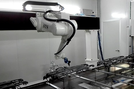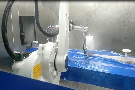 小型工件機(jī)器人噴漆現(xiàn)場(chǎng)