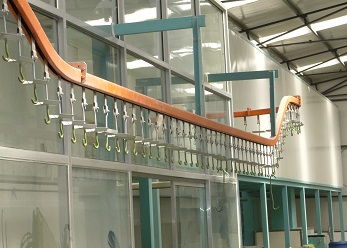 噴漆涂裝線以塑料件工藝為代表,前處理大多采用噴射式處理方式(部分金屬件采用浸漬式或噴射與浸漬結(jié)合方式),其主要目的是通過化學(xué)液體(硫酸、硝酸)以浸泡或噴射的方式,與工件表面的氧化物、油脂等產(chǎn)生化學(xué)反映來達(dá)到除油、脫脂、水洗、純水洗的目的。表面涂料為防腐油漆、色漆、清漆等裝飾性油漆材料,并且考慮塑料件高溫變形,一般采用的油漆成膜溫度為50至80℃左右,自動輸送系統(tǒng)前處理一般采用輕型懸掛鏈和輸送帶、網(wǎng)鏈送設(shè)備,前處理后轉(zhuǎn)線一般采用地鏈滑撬、懸掛輸送鏈等輸送方式。具體需要根據(jù)工件情況決定。其主要決定因素:工件大小、形狀、重量、材質(zhì)等。