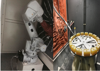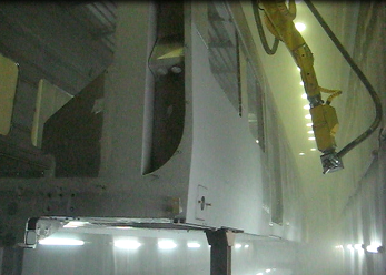 通過機(jī)器人、拋丸機(jī)設(shè)備實現(xiàn)自動噴砂/拋丸工藝,實現(xiàn)工件表面的去氧化皮、毛刺、焊渣、除銹等清理,從而達(dá)到涂裝粗糙度的工藝和表面強(qiáng)化要求