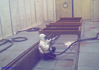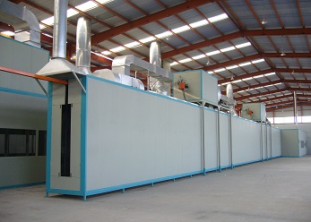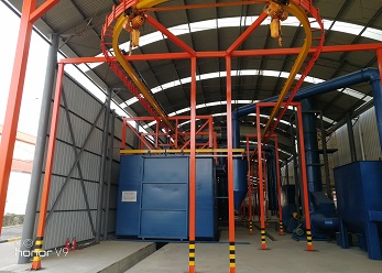 此噴涂線中工件輸送一般采用電動軌道車或天車為輸送方式。該噴涂線主要用于金屬工件、并且材質(zhì)較厚、工件較大的設(shè)備、鋼板,如鑄鍛件、鋼結(jié)構(gòu)件等。1噴1烘一般適合表面要求較低的設(shè)備(一般不建議采用),一般情況下,由于工件較大、重,生產(chǎn)量不高的情況下,噴砂(丸)、除塵都在噴砂房內(nèi)處理。噴底漆、面漆、烘干都在噴烘一體房內(nèi)進(jìn)行。